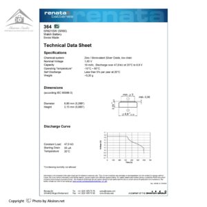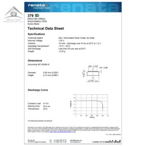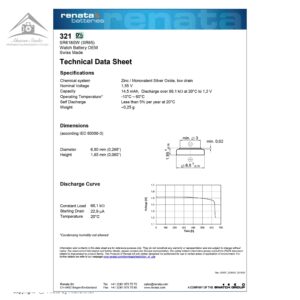باتریهای اکسید نقره و لیتیومی رناتا معمولاً بین ۷ تا ۱۰ سال عمر قفسه (Shelf Life) دارند. باتریهای سمعک به دلیل ساختار شیمیایی متفاوت، عمر قفسه کوتاهتری (حدود ۴ سال) دارند. تاریخ انقضا روی بستهبندی محصول درج شده است.