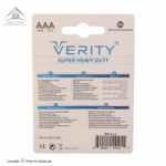 باتری نیم قلمی Verity مدل Super Heavy Duty با تکنولوژی زینک – کربن تولید شده که دارای قیمتی پایین بوده؛ این نوع باتری ها با ولتاژ 1.5 ولت قابلیت شارژ مجدد ندارند.